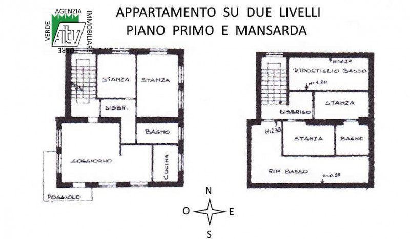 Il secondo appartamento, posizionato al secondo piano e in mansarda, si sviluppa su due livelli ed è composto da soggiorno con zona cottura dotato di un bel poggiolo ad angolo, 2 stanze da letto e bagno al primo livello; altre 2 stanze da letto, bagno e ripostigli al piano sottotetto.