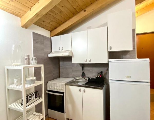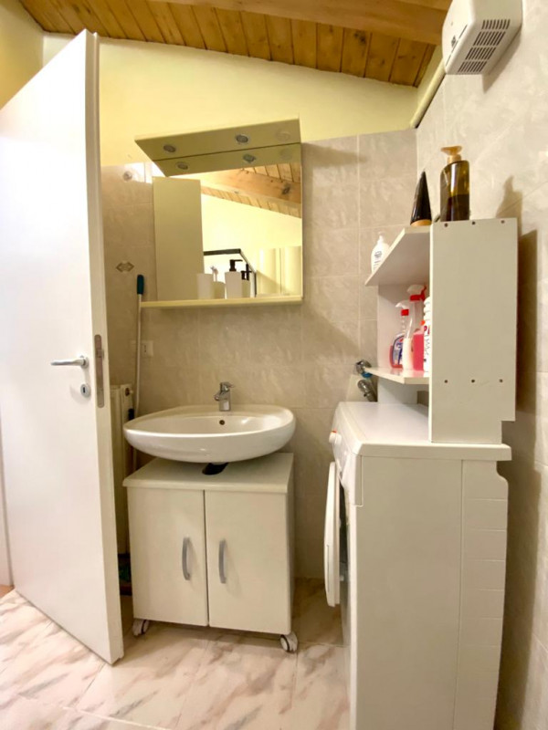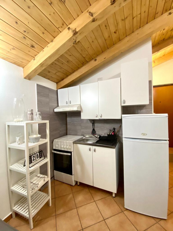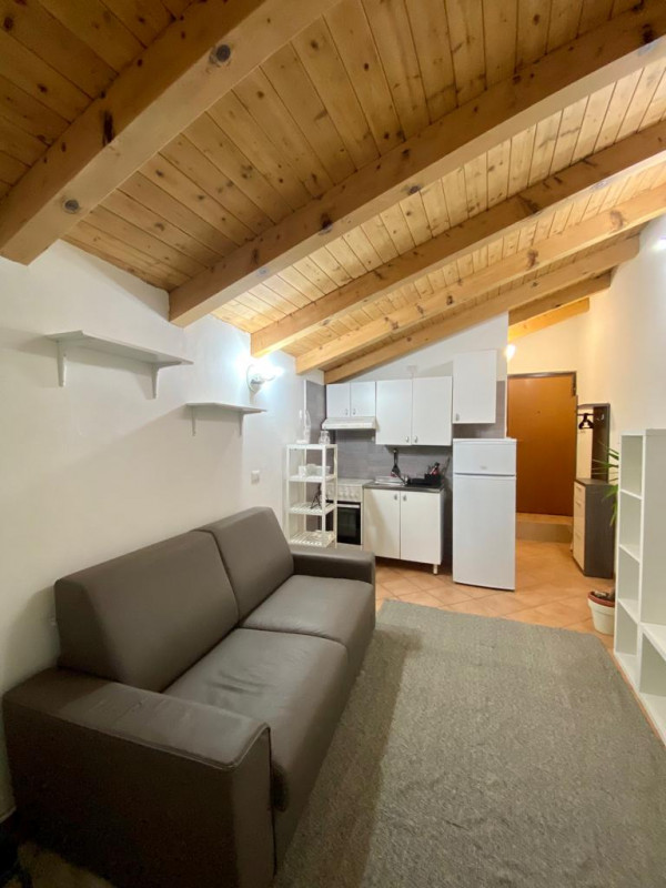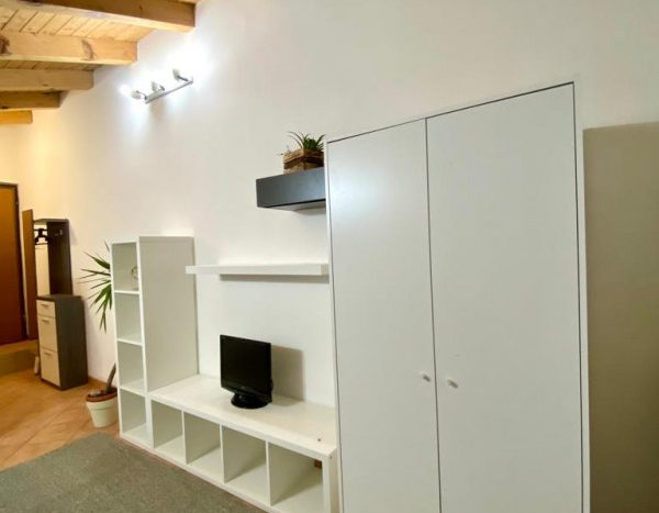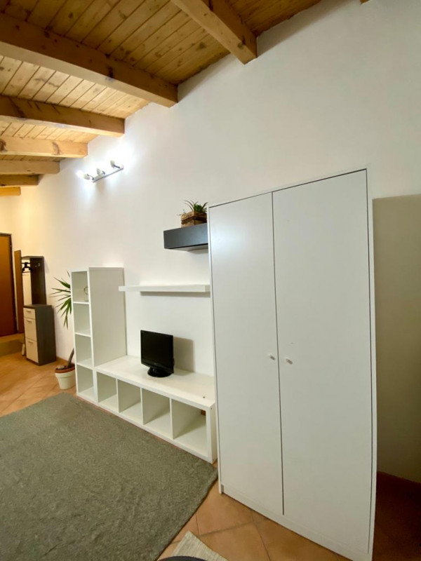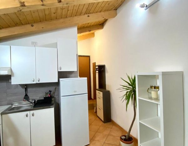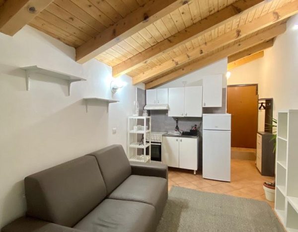 Il monolocale è ben distribuito e comprende un locale unico con letto a scomparsa che ottimizza lo spazio disponibile, cucinino a vista e bagno completo. Cantina di proprietà.