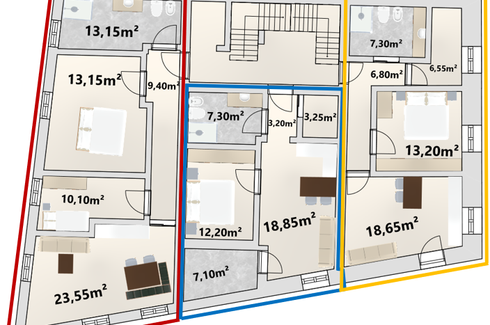 Le residenze si distinguono per AMBIENTI AMPI E LUMINOSI, distribuzioni interne eleganti e finiture di pregio, pensate per soddisfare le esigenze di una clientela raffinata e attenta alla qualità. Tutte le unità vengono consegnate CHIAVI IN MANO e dispongono di una CANTINA PRIVATA.