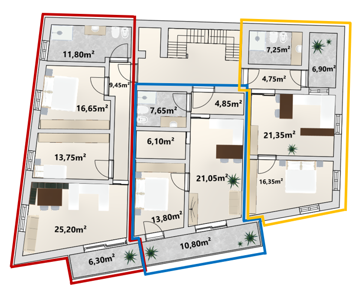 Le residenze si distinguono per AMBIENTI AMPI E LUMINOSI, distribuzioni interne eleganti e finiture di pregio, pensate per soddisfare le esigenze di una clientela raffinata e attenta alla qualità. Tutte le unità vengono consegnate CHIAVI IN MANO e dispongono di una CANTINA PRIVATA.