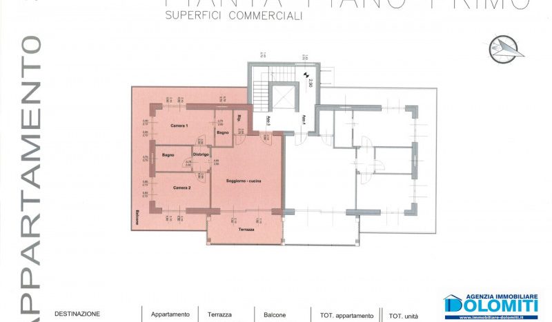 Disposto al primo piano, posizione soleggiata. Composto da Cucina/soggiorno, due stanze da letto, due bagni e ripostiglio.