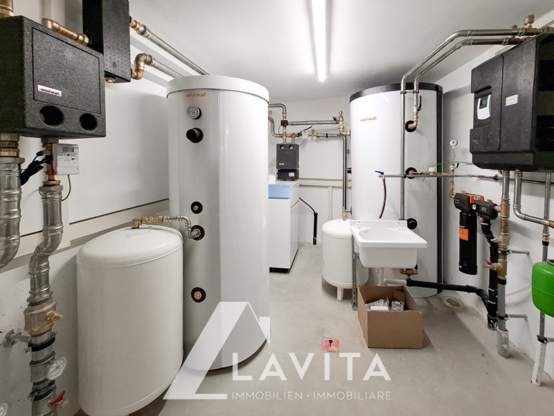 Die Immobilie ist mit einer zentralen Fußbodenheizung mit Wärmepumpe ausgestattet, die auch auf Fußbodenkühlung umgestellt werden kann.