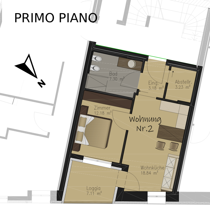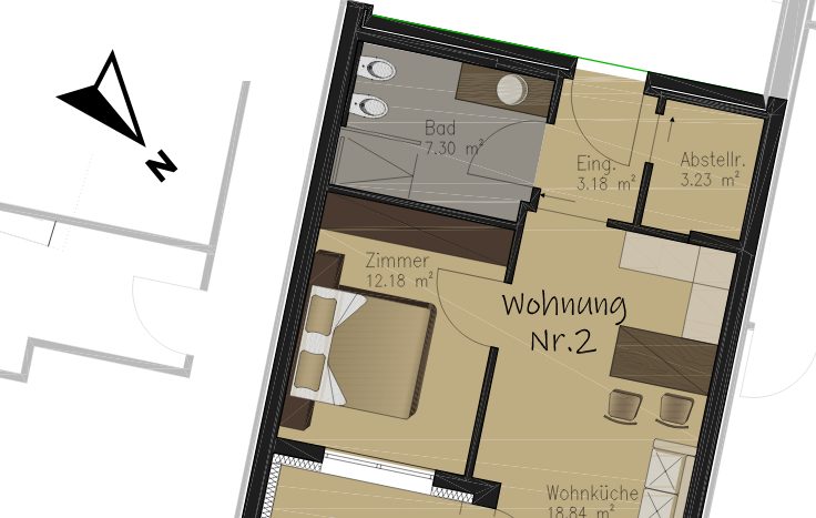 In der Mühlgasse in Tramin, in einem neu errichteten Gebäude mit Klimahaus-C-Zertifizierung, bieten wir diese helle Zwei-Zimmerwohnung zum Verkauf an.