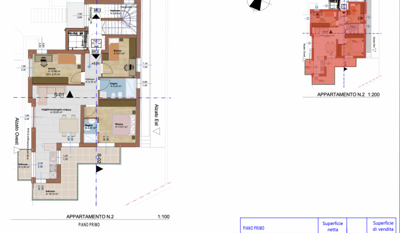 L’appartamento n. 2 qui proposto si trova al primo piano ed è composto da: ingresso, soggiorno/cucina con uscita sulla terrazza, una camera matrimoniale, due camere singole e un bagno finestrato.