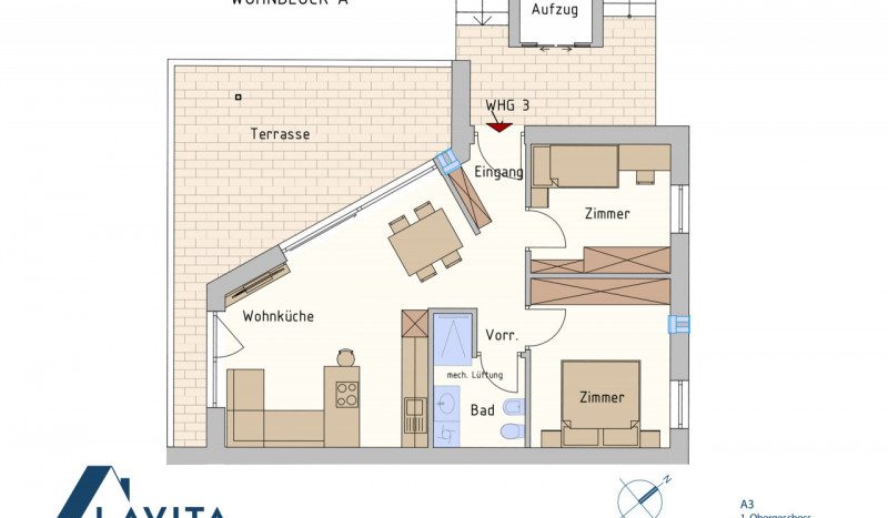 WOHNUNG A3 – 3-ZIMMER-WOHNUNG MIT TERRASSE – 1. OBERGESCHOSS