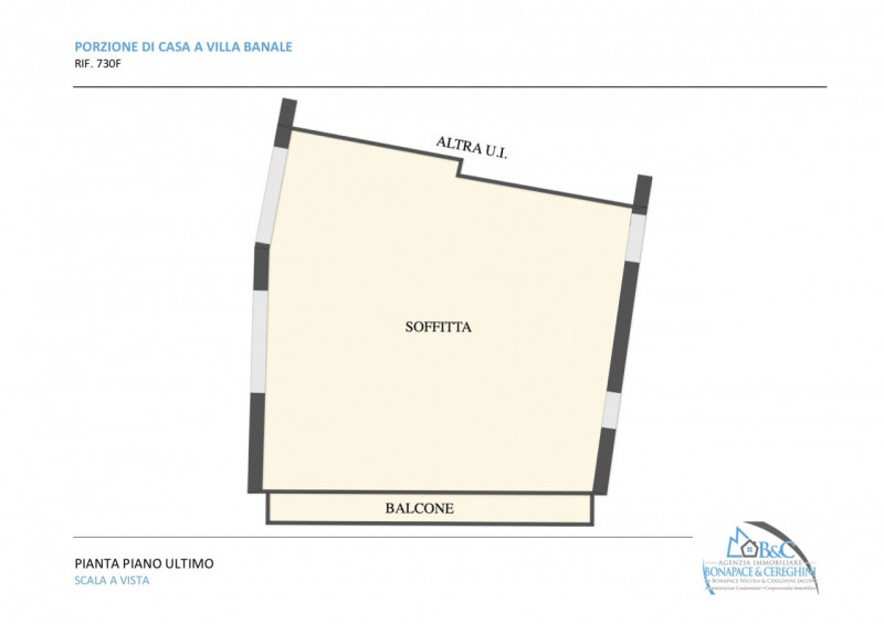 All’ultimo piano la soffitta permette la realizzazione di una splendida mansarda, con vista aperta sulla valle. Grazie alla disposizione della casa, è possibile realizzare un appartamento duplex, unendo il penultimo e l’ultimo piano e mantenendo la parte inferiore dell’abitazione completamente indipendente. In alternativa, è possibile creare un appartamento indipendente con accesso dalla corte comune al secondo piano. — annuncio pubblicato con GESTIONALEIMMOBILIARE.it