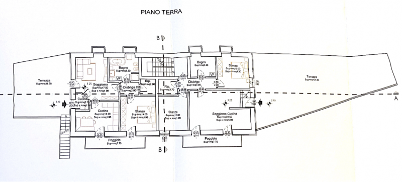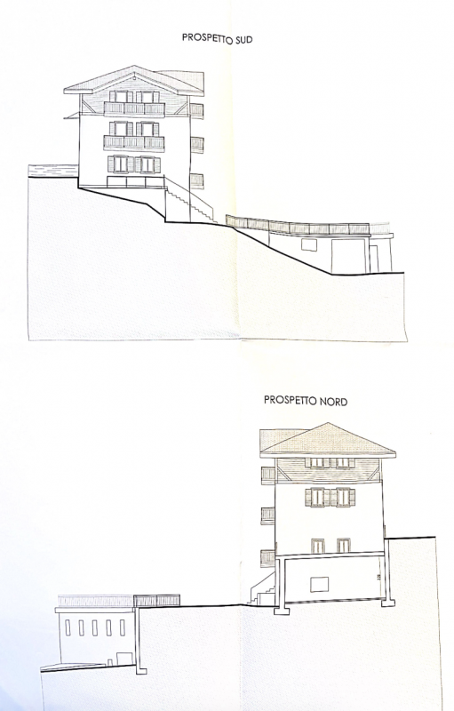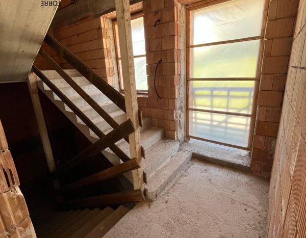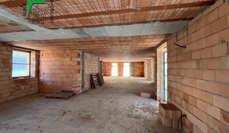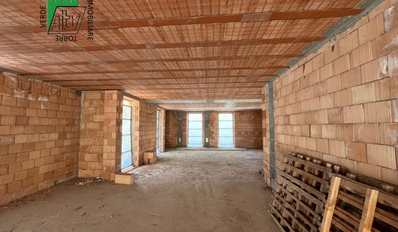 – Piano terra e piani superiori: locali al grezzo con poggioli e terrazze (circa 185 mq per piano)