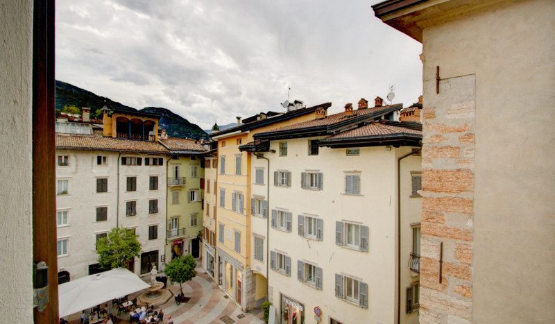 Varcato l’ingresso del palazzo, si viene accolti da un ampio androne che anticipa l’unicità del contesto: in alcuni tratti del pavimento si intravedono gli affascinanti scavi archeologici dell’antica Tridentum, testimonianza preziosa della storia della città. Proseguendo, si accede a un tranquillo cortile interno, perfetto per il deposito delle biciclette. Un antico portone in legno introduce infine al vano scala, servito da ascensore, impreziosito da una suggestiva scala in pietra che conduce al balcone d’ingresso, condiviso con un’altra unità.