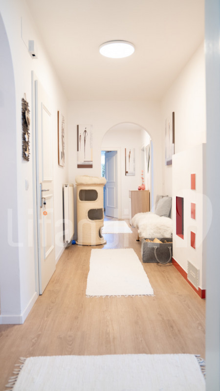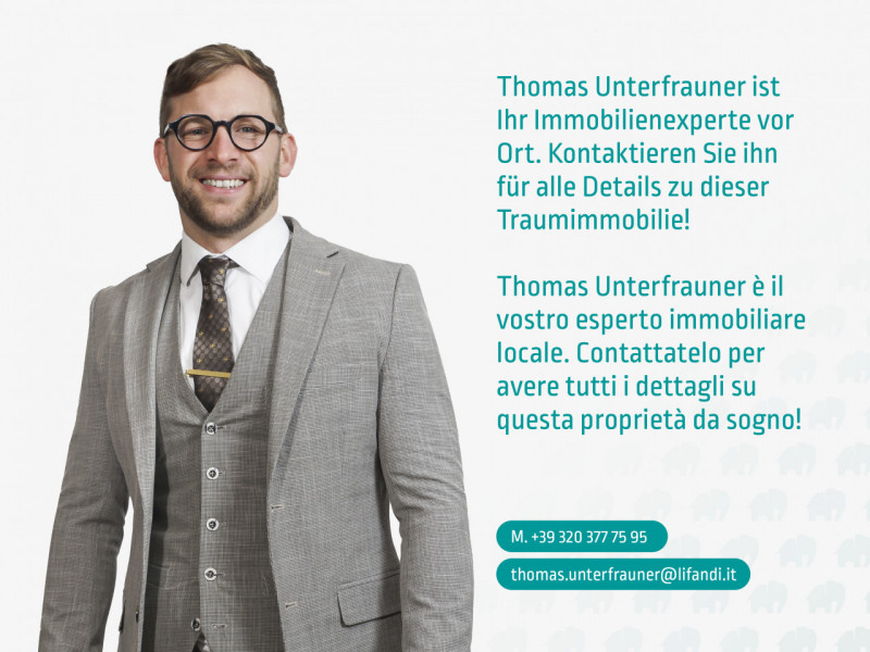 Diese 4-Zimmerwohnung befindet sich in Percha und präsentiert sich in sehr gutem Zustand. Die Fenster wurden kürzlich erneuert. Die Wohnung umfasst drei Schlafzimmer, zwei Badezimmer, ein Wohnzimmer sowie eine Küche mit Speis. Besonders hervorzuheben ist der sehr großzügige, südlich ausgerichtete Balkon. Zur Wohnung gehören außerdem ein abgetrennter Keller sowie eine geschlossene Garage. Der Außenbereich wird gemeinschaftlich mit dem Eigentümer der Wohnung im 1. Obergeschoss genutzt. Die Immobilie liegt in einer besonders ruhigen und sonnigen Umgebung in Percha – sowohl im Sommer als auch im Winter. Trotz der ruhigen Lage erreicht man in nur 2 Minuten die Hauptstraße und in ca. 8 Minuten das Zentrum von Bruneck.