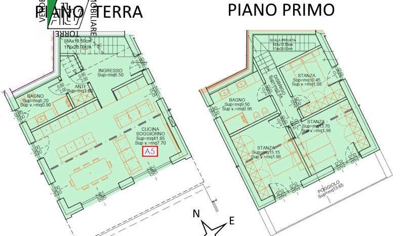 Spettacolare casa a schiera in posizione molto soleggiata e con ottima vista. La villetta si sviluppa su due piani ed è dotata di un ampio ingresso indipendente dal giardino privato, ampia zona giorno di ben 42mq, bagno finestrato di 6 mq, scala di accesso al piano primo dove troviamo 3 stanze da letto (2 matrimoniali ed una spaziosa stanza doppia), bagno finestrato di 9,50 mq e un panoramico terrazzo coperto di 13,65 mq. Al piano interrato la proprietà include un grande garage doppio di 50 mq ed una cantina/taverna di 30 mq, all’esterno posto macchina privato. Questa casa sarà dotata di impianto fotovoltaico con potenza di 5,4 kwp.