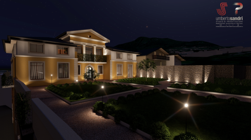 – al piano terra, con una superficie di 170 mq netti, sarà predisposto l’ingresso, la cucina, la sala da pranzo, il soggiorno, la lavanderia, i bagni ed una camera matrimoniale con bagno, cabina armadio e balcone affacciato su tutta la città. Completa il piano terra l’ampio giardino privato con posti auto, garage ecc..