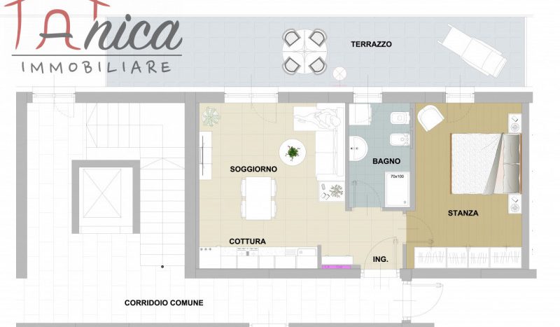 VIA DELLA CANOVA – In nuova costruzione di classe energetica A + vendiamo miniappartamento sito al piano secondo con esposizione Est, composto da: ingresso, soggiorno con angolo cottura con accesso a un terrazzo abitabile, stanza matrimoniale (anch’essa con accesso allo spazio esterno) e bagno finestrato con doccia. Di pertinenza cantina a scelta tra quelle disponibili. Posti auto condominiali liberi e possibilità di acquisto di garage da 23.000 euro e/o di posto auto esterno privato da 12.000 euro con recupero fiscale sul costo di costruzione. Riscaldamento centralizzato a pavimento con contacalorie, tapparelle elettriche, serramenti in triplo vetro PVC, predisposizione per l’aria condizionata e per la centralina domotica. La costruzione dispone di pannelli solari, fotovoltaici e cappotto.