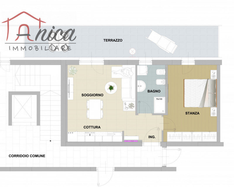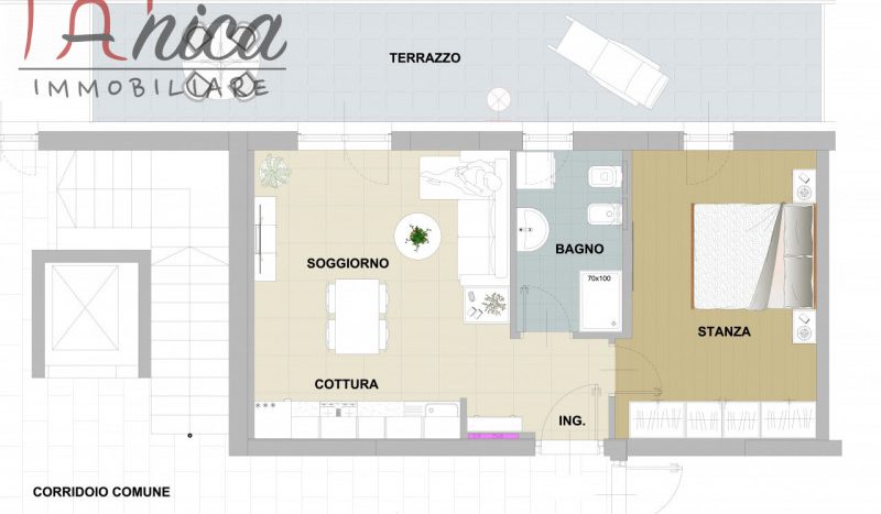 VIA DELLA CANOVA – In nuova costruzione di classe energetica A + vendiamo miniappartamento sito al piano terzo con esposizione Est, composto da: ingresso, soggiorno con angolo cottura con accesso a un terrazzo, stanza matrimoniale (anch’essa con accesso allo spazio esterno), disbrigo arredabile e bagno finestrato con doccia. Di pertinenza cantina a scelta tra quelle disponibili. Posti auto condominiali liberi e possibilità di acquisto di garage da 23.000 euro e/o di posto auto esterno privato da 12.000 euro con recupero fiscale sul costo di costruzione. Riscaldamento centralizzato a pavimento con contacalorie, tapparelle elettriche, serramenti in triplo vetro PVC, predisposizione per l’aria condizionata e per la centralina domotica. La costruzione dispone di pannelli solari, fotovoltaici e cappotto.