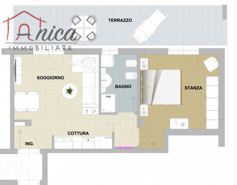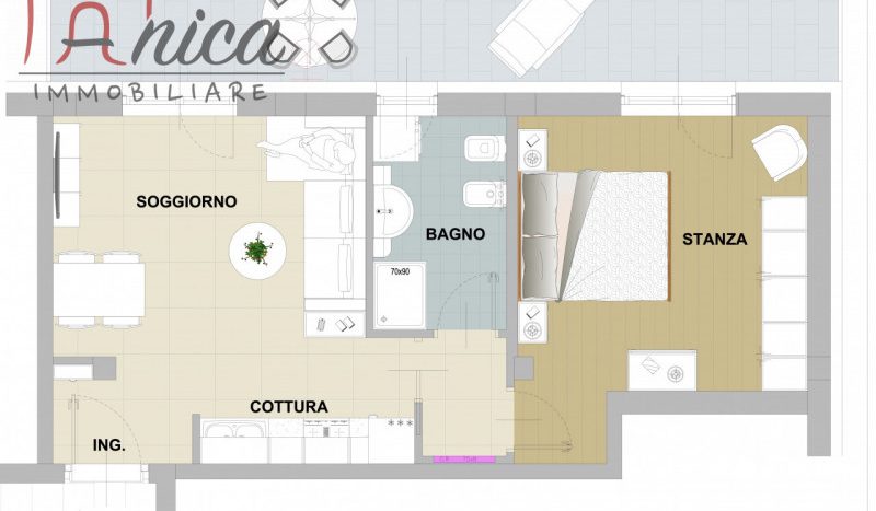 VIA DELLA CANOVA – In nuova costruzione di classe energetica A + vendiamo miniappartamento sito al terzo piano con esposizione Est, composto da: ingresso, soggiorno con angolo cottura con accesso all’ampio terrazzo, stanza matrimoniale (anch’essa con accesso al terrazzo), disbrigo e bagno finestrato con doccia. Di pertinenza cantina a scelta tra quelle disponibili. Posti auto condominiali liberi e possibilità di acquisto di garage da 23.000 euro e/o di posto auto esterno privato da 12.000 euro con recupero fiscale sul costo di costruzione. Riscaldamento centralizzato a pavimento con contacalorie, tapparelle elettriche, serramenti in triplo vetro PVC, predisposizione per l’aria condizionata e per la centralina domotica. La costruzione dispone di pannelli solari, fotovoltaici e cappotto.
