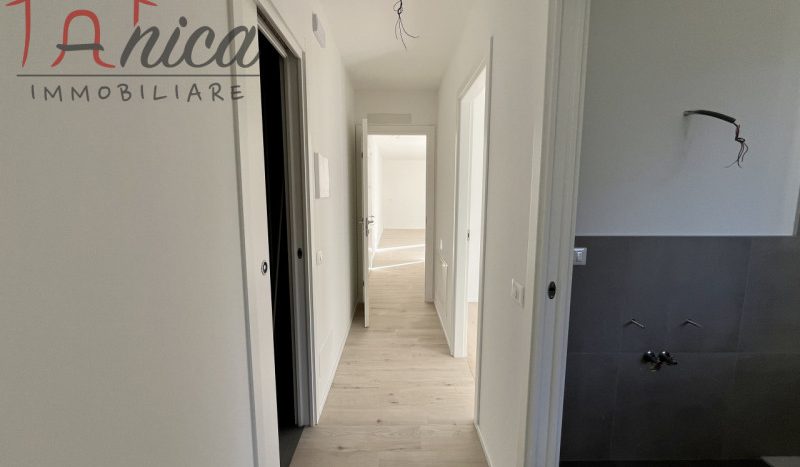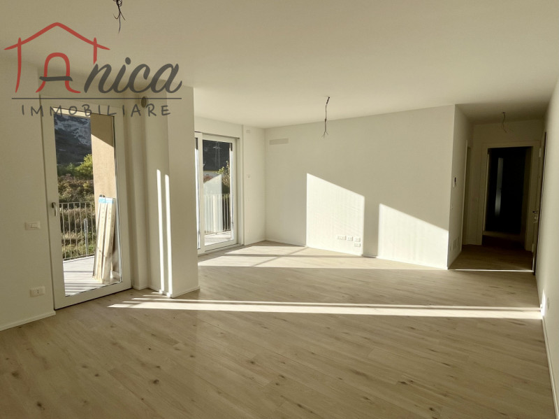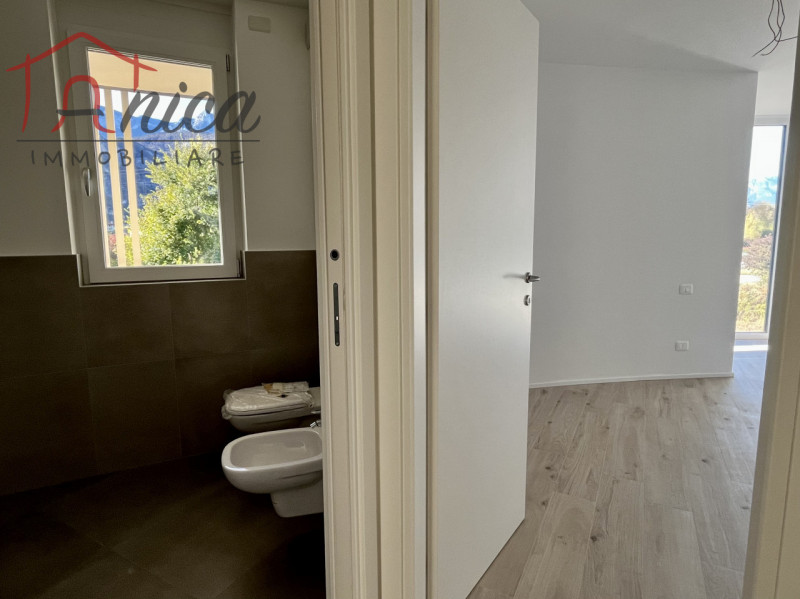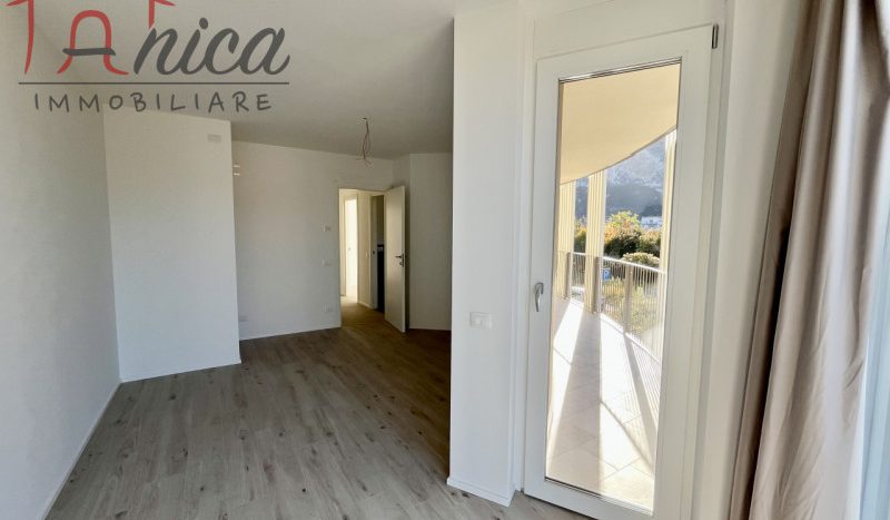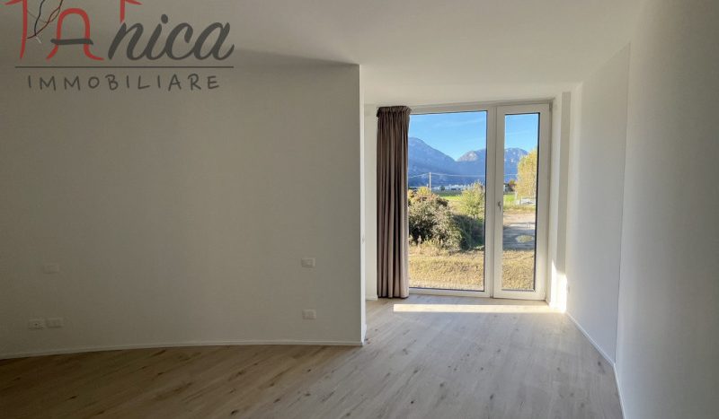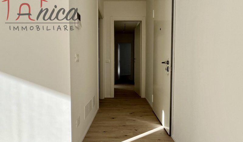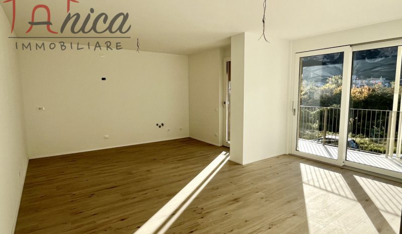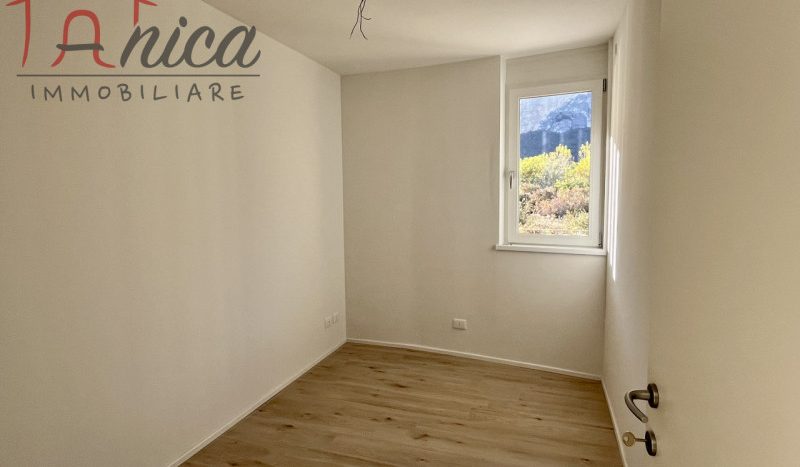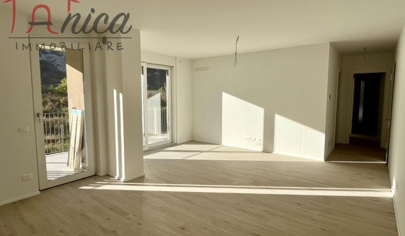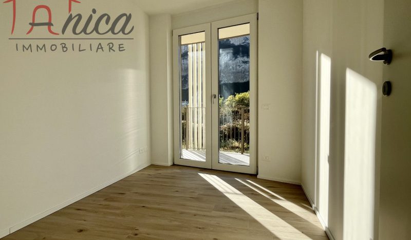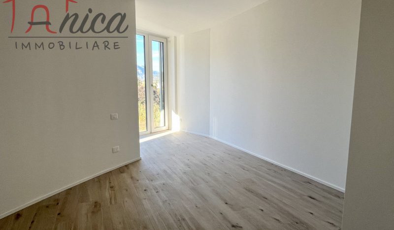 VIA DELLA CANOVA – In nuova costruzione di classe energetica A + vendiamo appartamento sito al primo piano con esposizione Nord-Ovest composto da: ingresso, soggiorno con cucina a vista eventualmente separabile, tre stanze da letto (una matrimoniale e due singole), due bagni (di cui uno finestrato) e ampio terrazzo. Di pertinenza cantina a scelta tra quelle disponibili. Posti auto condominiali liberi e possibilità di acquisto di garage da 23.000 euro e/o di posto auto esterno privato da 12.000 euro con recupero fiscale sul costo di costruzione. Riscaldamento centralizzato a pavimento con contacalorie, tapparelle elettriche, serramenti in triplo vetro PVC, predisposizione per l’aria condizionata e per la centralina domotica. La costruzione dispone di pannelli solari, fotovoltaici e cappotto.