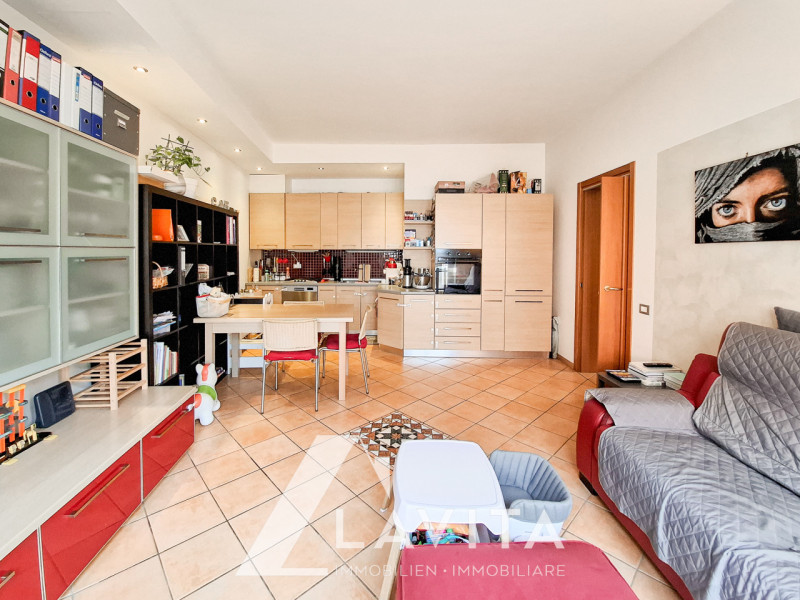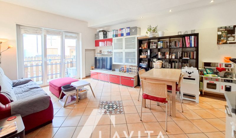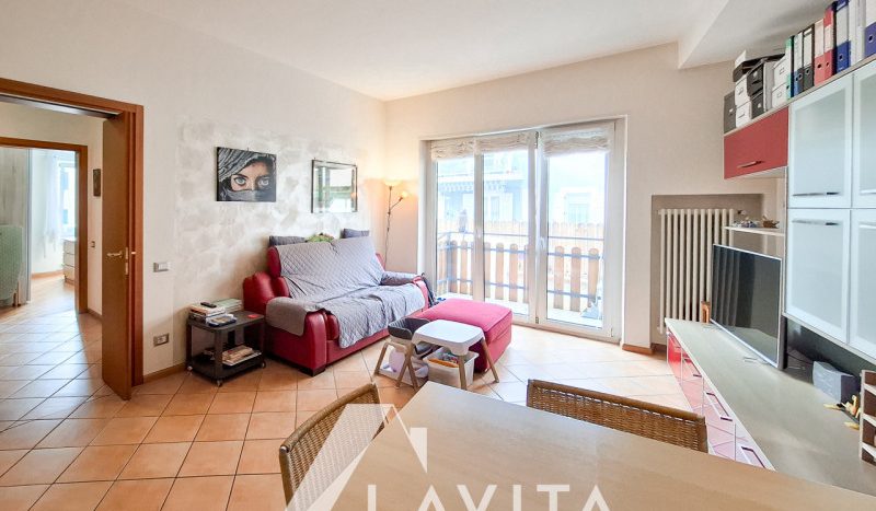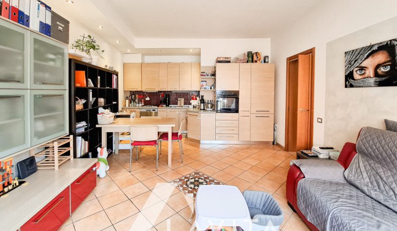 L’immobile è composto da ingresso, spazioso soggiorno e cucina abitabile con accesso diretto alla terrazza di 33mq, due camere da letto, di cui una con accesso ad un secondo balcone ed un bagno finestrato.
