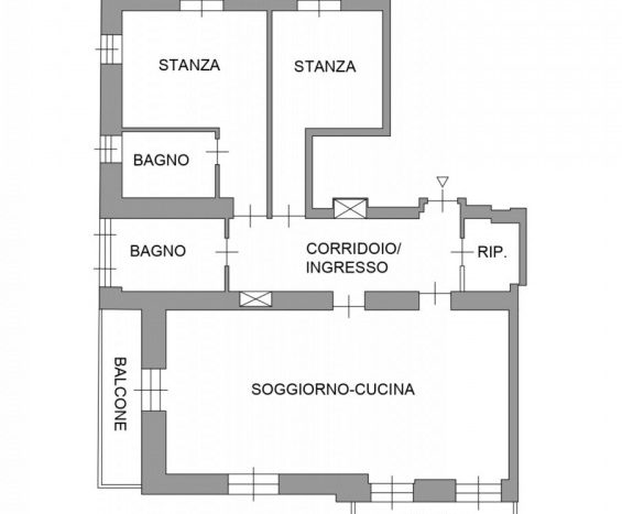 L’appartamento, completamente ristrutturato, si apre su un ampio ingresso che si prolunga in un elegante corridoio, dal quale si accede ai vari ambienti della casa.