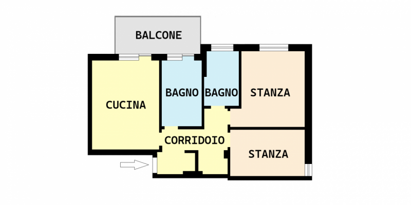 ELENCO VANI: L’appartamento è composto da due stanze, cucina abitabile ,2 bagni finestrati, corridoio, , cantina e un balcone.