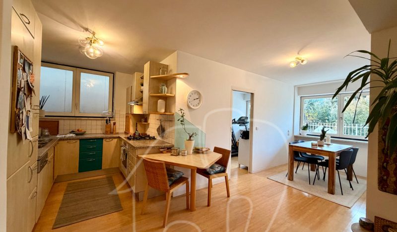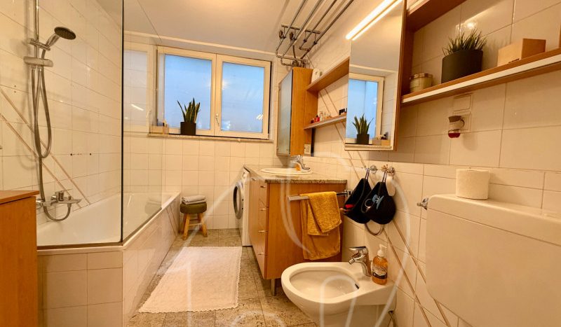 La grande terrazza amplia lo spazio abitativo verso l’esterno ed è perfetta per momenti di relax. Completano l’offerta una cucina separata e uno studio versatile. Inoltre sono disponibili una cantina per ulteriore spazio di deposito e un posto auto condominiale.