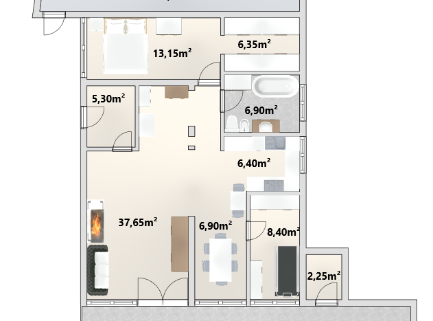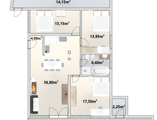 Diese 3-Zimmerwohnung lässt sich bei Bedarf auch zu einer 4-Zimmerwohnung umbauen und ist damit ideal für Familien geeignet. Es stehen drei großzügige Schlafzimmer zur Verfügung, die jeweils ausreichend Platz für ein Doppelbett bieten und alle mindestens ein Fenster haben. Das Badezimmer ist ebenfalls fensterbelichtet und kann je nach Bedarf mit Badewanne und Dusche oder alternativ mit Platz für eine Waschmaschine ausgestattet werden. Ein weiteres Highlight ist die riesige Open-Space-Wohnküche mit Ofen, die viel Raum für gemeinsames Kochen und Wohnen bietet.