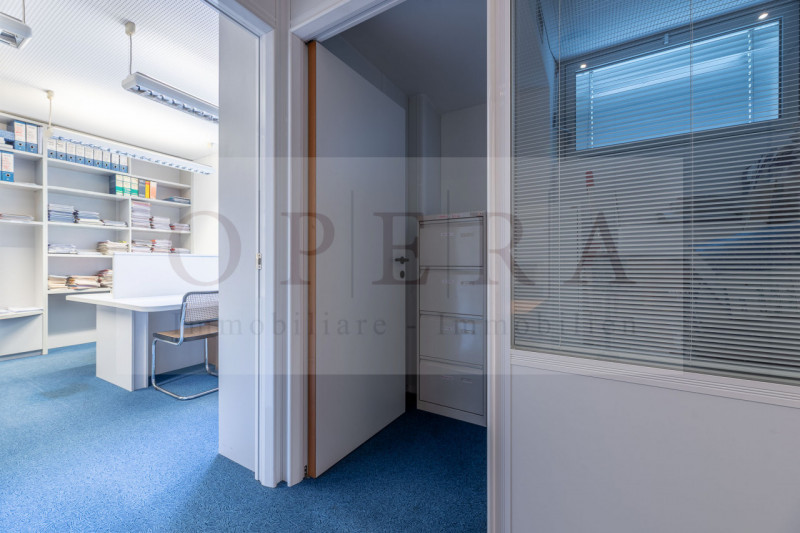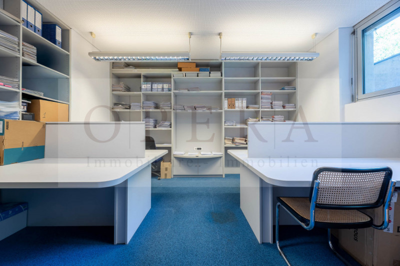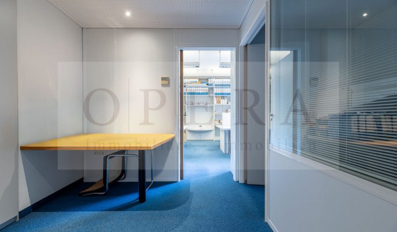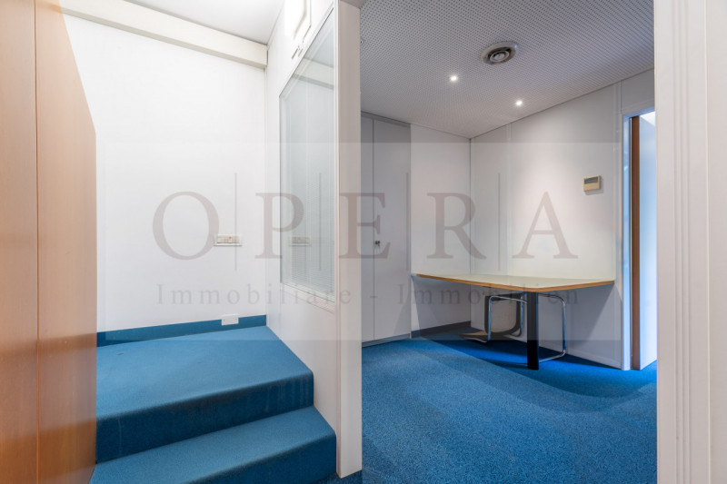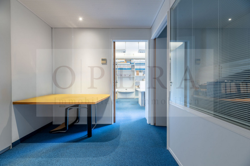 Al piano seminterrato si trovano ulteriori spazi funzionali, tra cui un ufficio aggiuntivo, un archivio, una sala server e due servizi. Questo livello si presta perfettamente ad attività di supporto, aree tecniche o ulteriori postazioni operative.