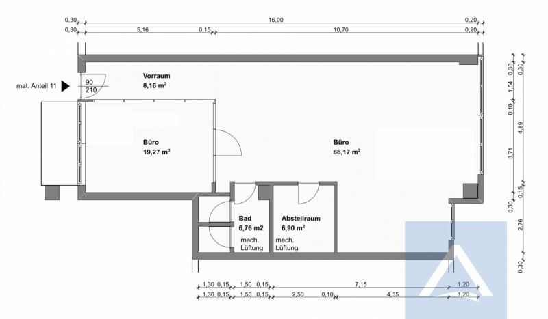 Dank der zentralen Lage sind öffentliche Verkehrsmittel, Restaurants und Geschäfte bequem zu Fuß erreichbar. Die gute Erreichbarkeit sowie die Nähe zu wichtigen Knotenpunkten machen das Büro ideal für Dienstleister, Freiberufler oder kleine bis mittelgroße Unternehmen.