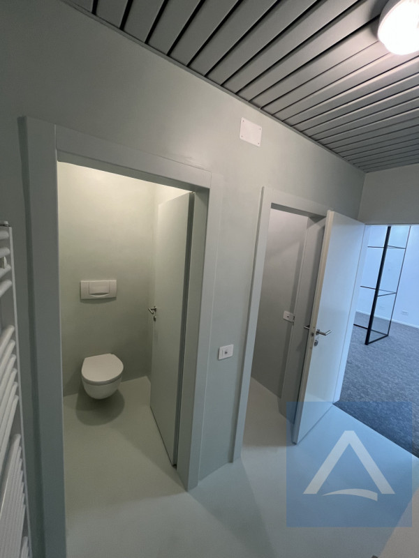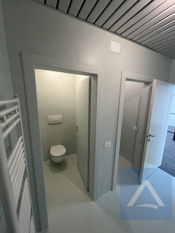 La disposizione interna offre grande flessibilità nella suddivisione degli spazi operativi o delle postazioni lavoro secondo ogni esigenza aziendale. Sono presenti locali accessori utilissimi come archivio/ufficio privato con parquet ed eleganti servizi igienici nuovi dal design contemporaneo.
