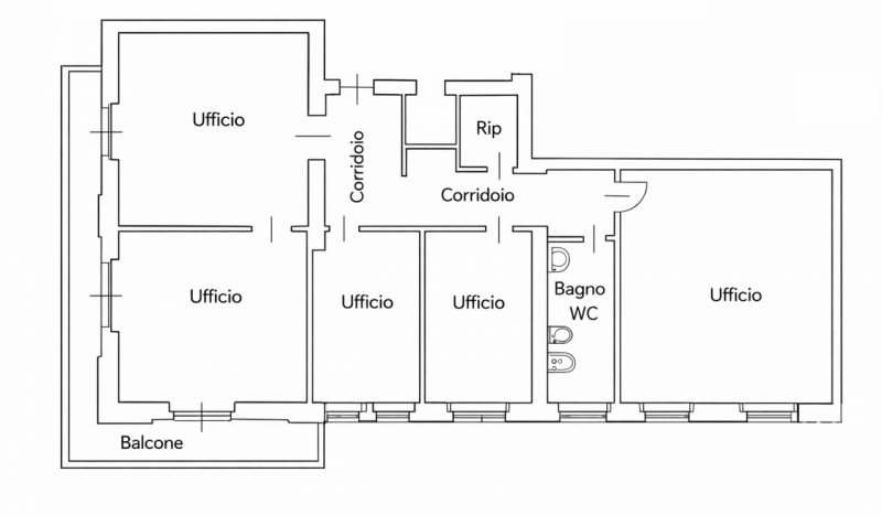 L’immobile ha una superficie di circa 157 m² commerciali ed è composto da ingresso, 5 uffici, ripostiglio, bagno, una stanza nel sottotetto e una cantina.