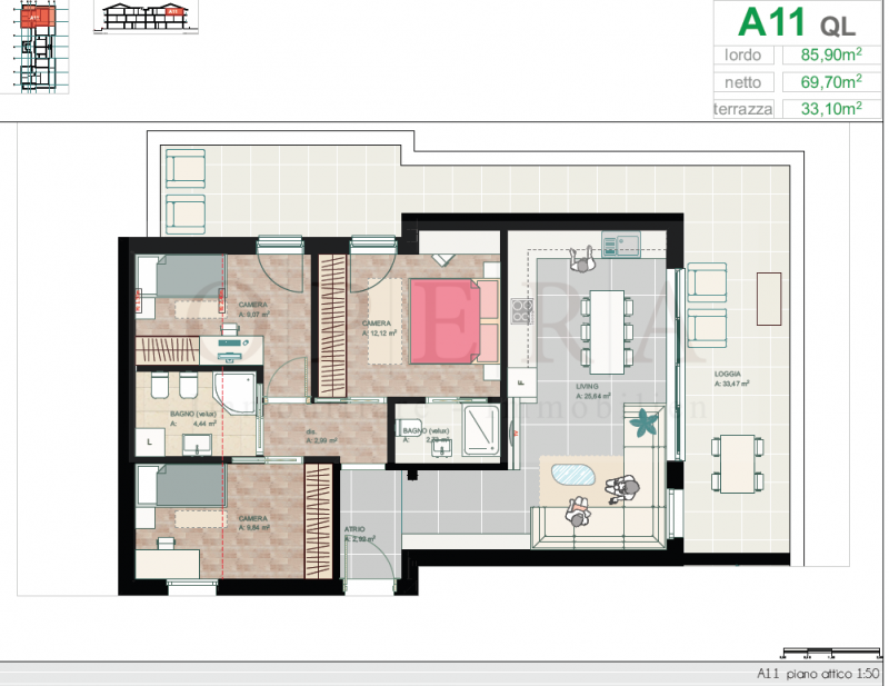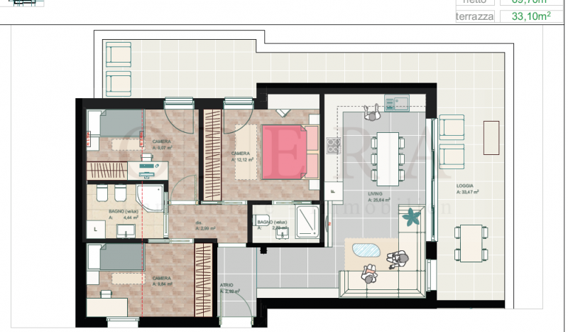Vendesi Appartamento con Terrazza – 3 Camere da Letto in Zona Verde.