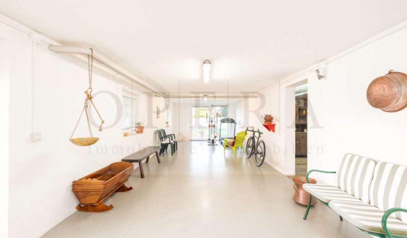 Attuale: villa singola con ampio giardino privato con sei stanze da letto, soggiorno, cucina, doppi servizi (facilmente diventano 4), taverna, ampio garage e cantine.
