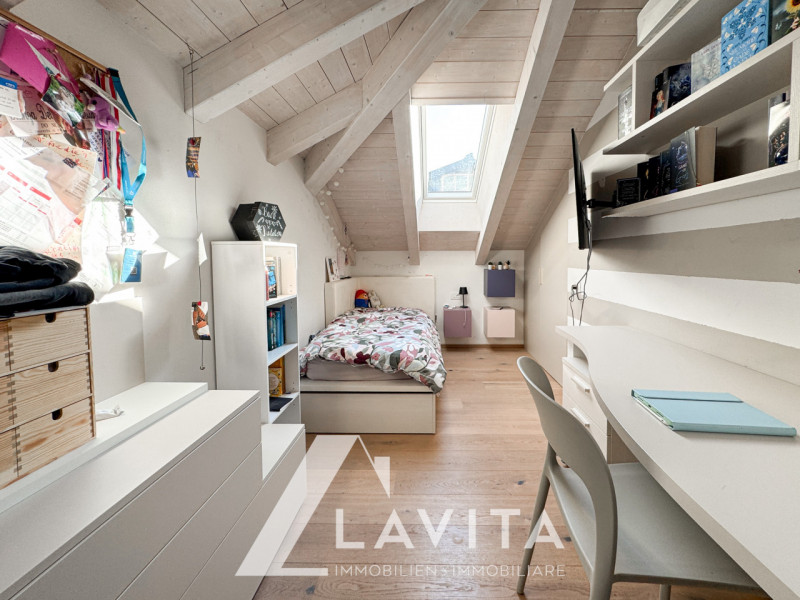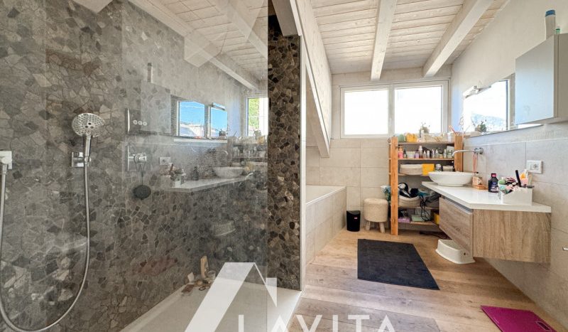 L’immobile è certificato in Classe Energetica CasaClima B ed è stata ristrutturata con un l’elevato standard qualitativo e tecnologico. La ristrutturazione ha incluso l’installazione del cappotto termico, una moderna pompa di calore, riscaldamento a pavimento, aria condizionata canalizzata, infissi in PVC con triplo vetro, tapparelle elettriche, velux automatizzate, termostati indipendenti in ogni ambiente e porte blindate.