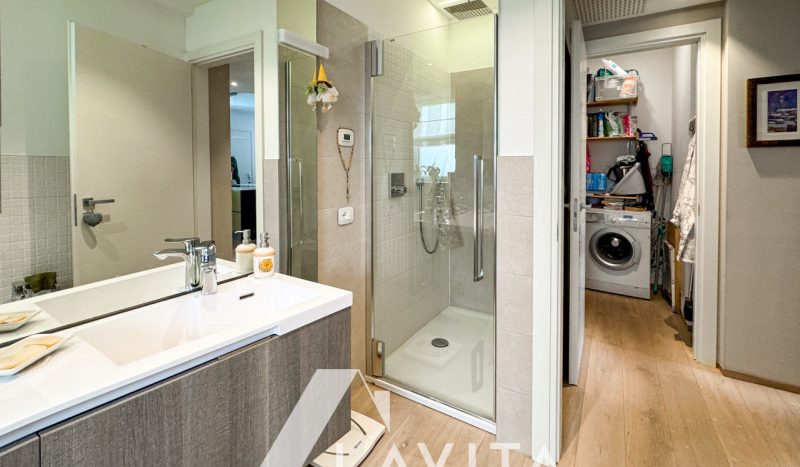 Completa l’immobile un giardino attrezzato con doccia esterna, due posti auto e tre cantine multifunzionali finestrate con bagno di servizio.