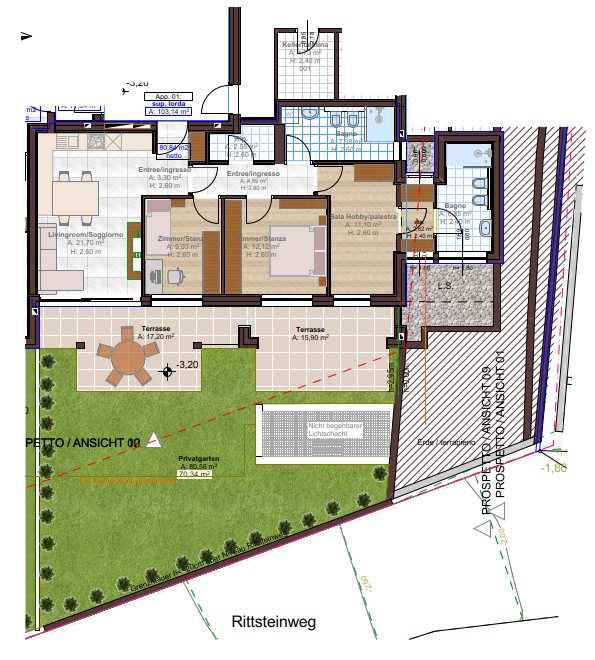 Siamo lieti di potervi offrire 9 moderni appartamenti di nuova costruzione di diverse dimensioni e tipologie in una delle zone residenziali più rinomate di Appiano sulla Strada del Vino. Il nuovo edificio residenziale si sviluppa su 4 piani e sarà presumibilmente pronto per la consegna a metà del 2027.Le unità abitative convincono per la loro architettura luminosa e per la possibilità di una personalizzazione degli spazi interni. Un’ampia scelta di materiali di alta qualità consente di creare un ambiente abitativo in linea con il proprio stile di vita e le proprie esigenze. La costruzione secondo lo standard “A-Natura” garantisce non solo un risparmio energetico a lungo termine, ma anche il massimo comfort abitativo. Inoltre, potrete beneficiare di una garanzia decennale del costruttore, per un investimento sicuro e senza pensieri. Garage e cantine sono disponibili per l’acquisto separato e completano questa offerta esclusiva.