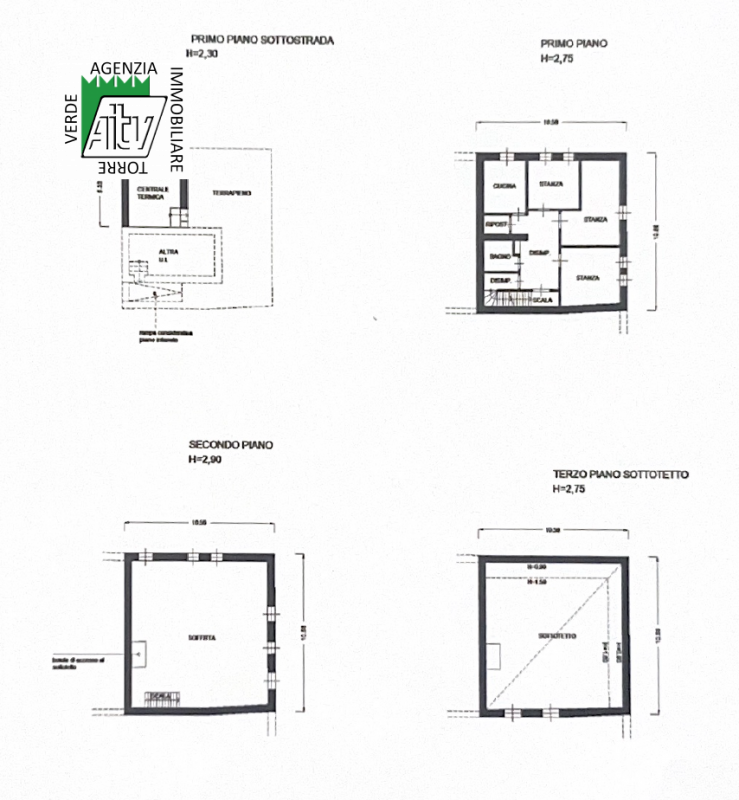 – Piano terra: piazzale privato, comodo garage, porticato, locale caldaia e cantina.