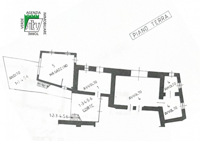 – Piano terra: ampi avvolti, locale caldaia e garage.