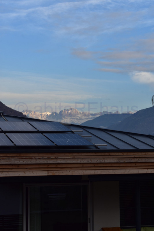 piani superiori ed a quello inferiore. Il Living e la cucina sono serviti dal riscaldamento a pavimento, come tutto il resto della casa, ma anche di una stufa a legna che regala atmosfere calde. La luce è massima grazie alla presenza delle grandi finestre a Sud che affacciano sul verde del giardino privato.