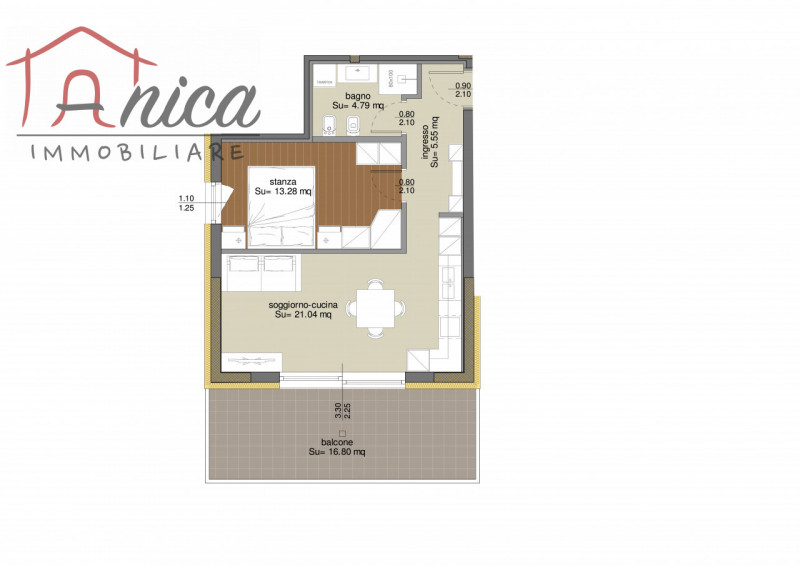 ZONA CLARINA – In nuova costruzione di classe energetica A + vendiamo appartamento bilocale sito al primo piano servito da ascensore, con esposizione Nord-Ovest composto da: atrio d’ingresso arredabile, soggiorno-cucina con accesso al terrazzo di 17 mq, stanza da letto matrimoniale e bagno cieco con doccia. L’immobile è stato terminato con materiali/finiture di ottima qualità.